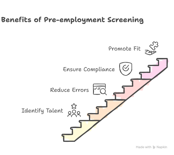 Screening helps identify candidates who possess the required technical, cognitive, and behavioral skills for the role. This reduces training burden and improves early job performance.