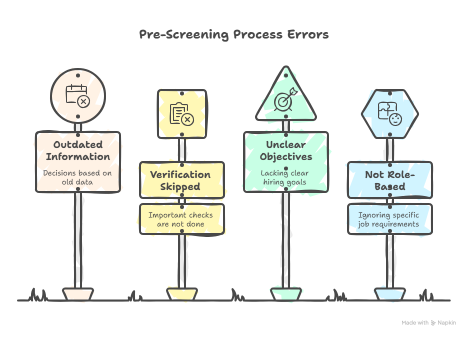 Another frequent error involves unclear screening criteria. When recruiters are unsure what constitutes a pass or fail, decisions become inconsistent. This is especially problematic in large organizations where multiple recruiters handle similar roles. Without standardized benchmarks, the same screening result may lead to different outcomes.