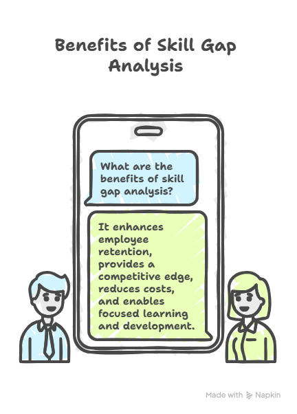 Organizations that conduct skills gap analysis regularly benefit from improved workforce planning, better performance evaluations, and more effective learning investments. It aligns employee growth with business objectives, creating a culture of continuous improvement and adaptability.