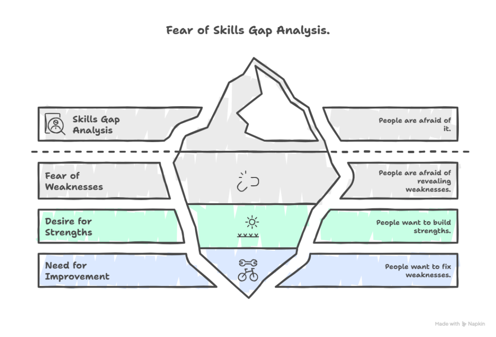 “People are afraid that the skills gap analysis will reveal weaknesses, as opposed to building strengths and fixing weaknesses in the workforce.”